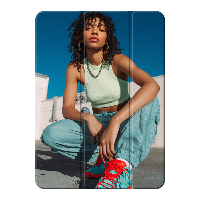 Smart Cover-ul personalizat este un produs creat pentru a proteja corpul și ecranul tabletei. Compus dintr-un strat de plastic polișat în spate și o clapetă în față, acest Smart Cover personalizabil este atașat de iPad Air 2026 (11 inch) cu ajutorul magneților. Unii magneți sunt plasați în interior, ceea ce permite tabletei să intre imediat în modul de veghe atunci când clapeta este închisă și, astfel, să economisească bateria. Smart Cover-ul iPad Air 2026 (11 inch) este imprimat pe față folosind tehnici de imprimare UV de înaltă rezoluție.